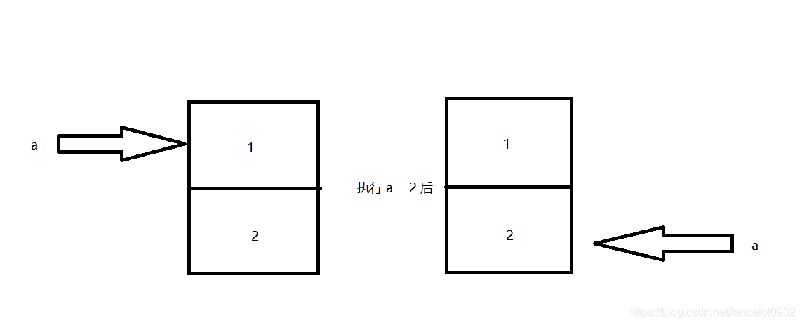 因为在Python中一切皆是对象,而变量只是对变量的引用 ( 或称标签 ),对对象的操作都是通过对引用来完成的,所以数字 1 是一个对象,内存为这个对象分配空间,而a只是一个标签,在执行 a=2后,这个标签绑定了另外一个对象,也就是2,用图来表示